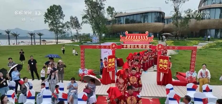 这样的集体婚礼线年起,民政部在全国确定了32个婚俗改革实验区。倡导这样简约适度的婚礼形式,同时通过加大宣传等措施,有效地遏制了高价彩礼和铺张浪费等不良风气。