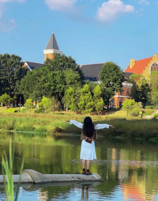 ,还有青翠的草地、娇艳的鲜花、清澈的河流与湖泊,随手一拍就是大片,真的就好像出国了一样。要问这里是什么地方,其实这座欧式小镇是广西南宁的