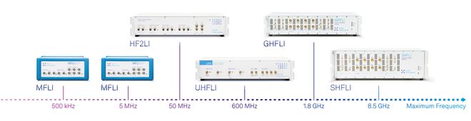 图 14. 瑞士苏黎世仪器的锁相放大器是锁相技术领域最前沿技术的代表。这些设备支持不同的频率范围,可以很好地应用于从材料表征到光子学和量子技术的各类应用。GHFLI和SHFLI锁相放大器可分别测量从直流到1.8 GHz和8.5 GHz频率范围的信号,开创了微波频率锁相检测的先河。如图16所示,这些仪器都集成了大量功能,并搭载了先进的仪器控制软件LabOne®(参见图15)。